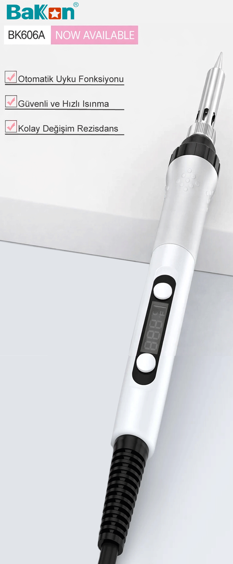Bakon BK606A Isı Ayarlı Portatif Dijital 90W Kalem Havya