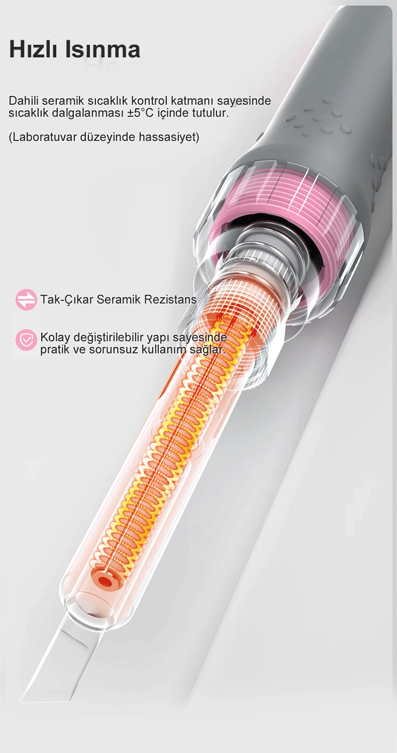 ✅ Otomatik Uyku Modu: 12 dakika kullanılmadığında otomatik uykuya geçer, havya hareket ettirildiğinde tekrar aktif olur