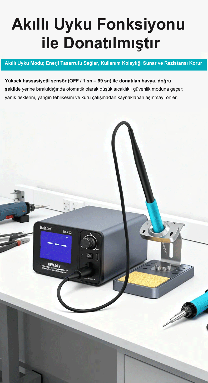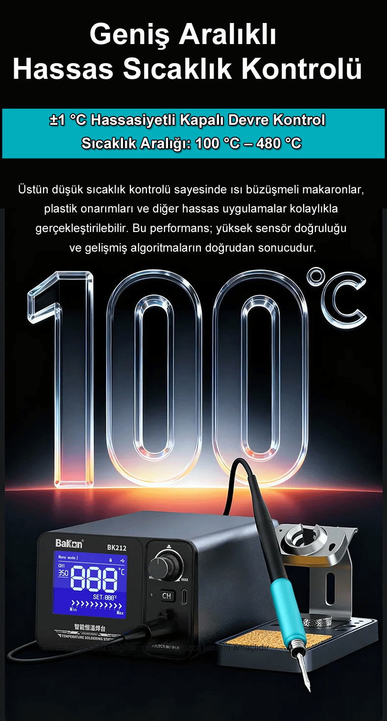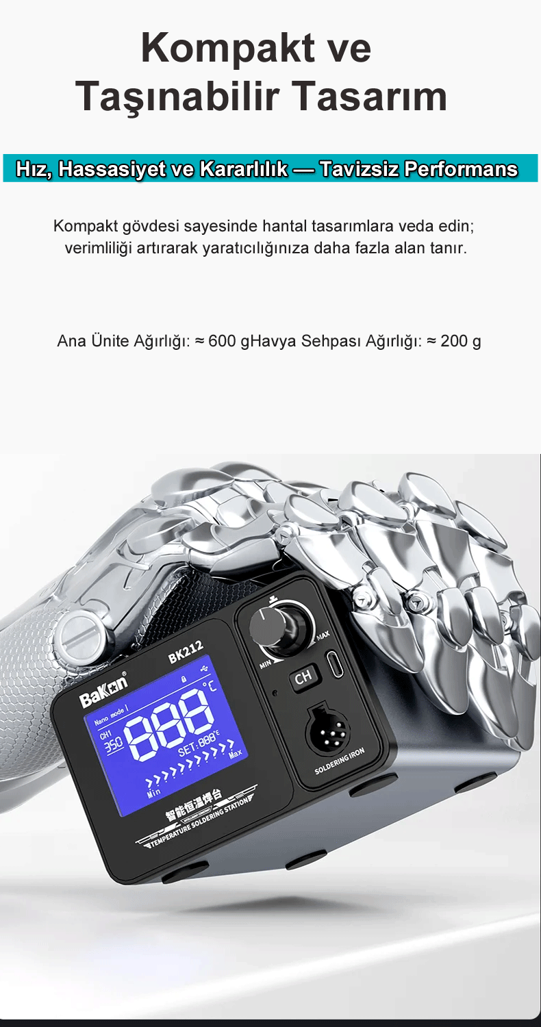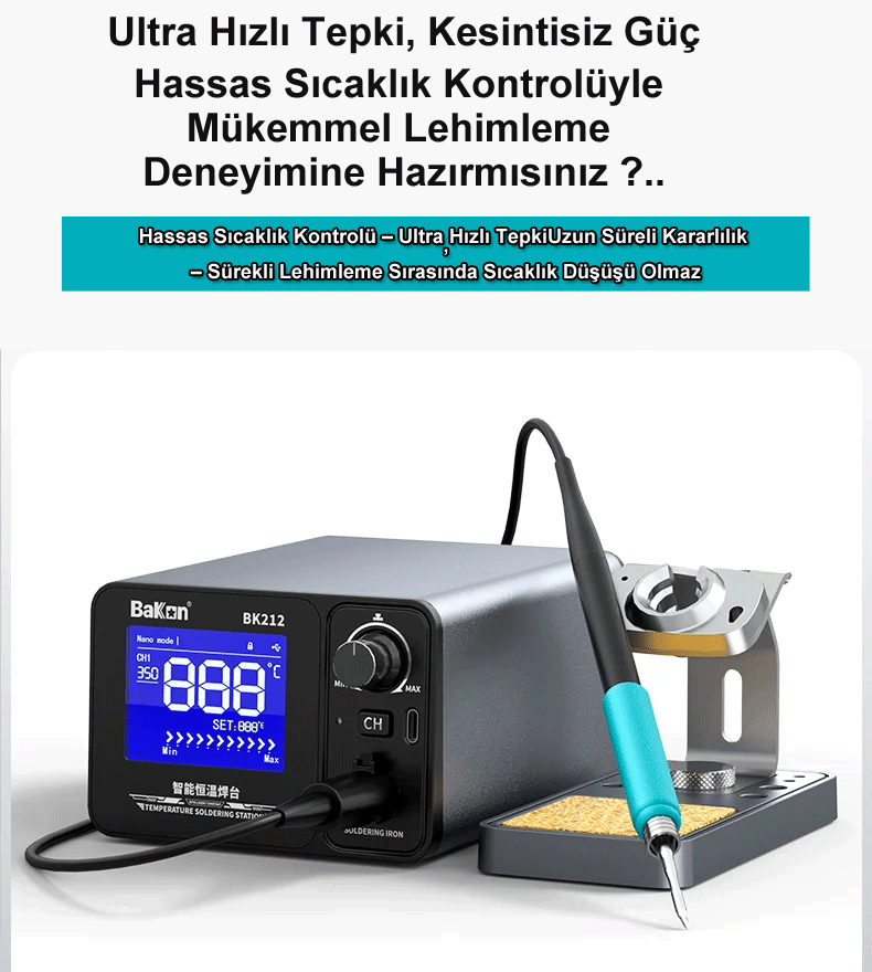 BK212 Lehimleme İstasyonu, amatör kullanıcıdan profesyonel teknik servislere kadar geniş bir kitleye hitap eden, yüksek performanslı ve akıllı bir lehimleme çözümüdür.