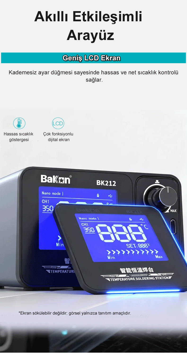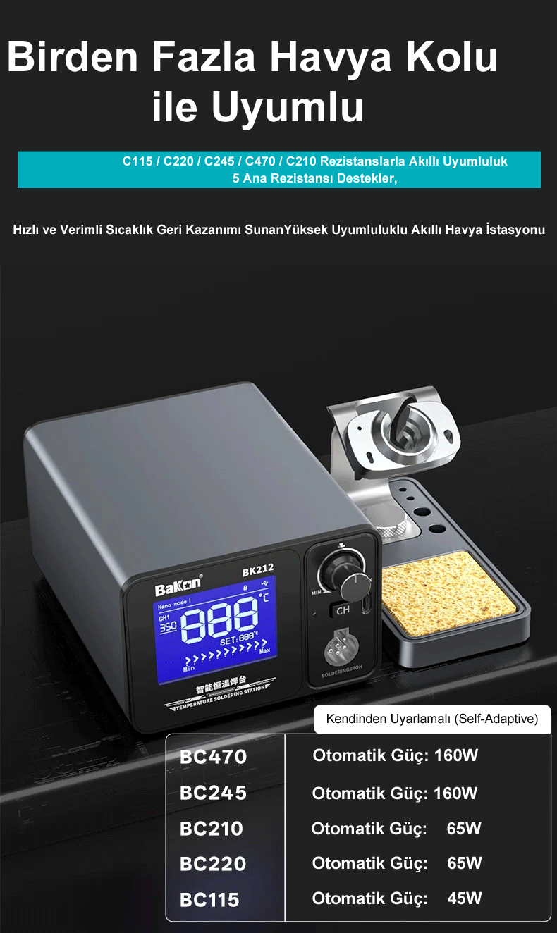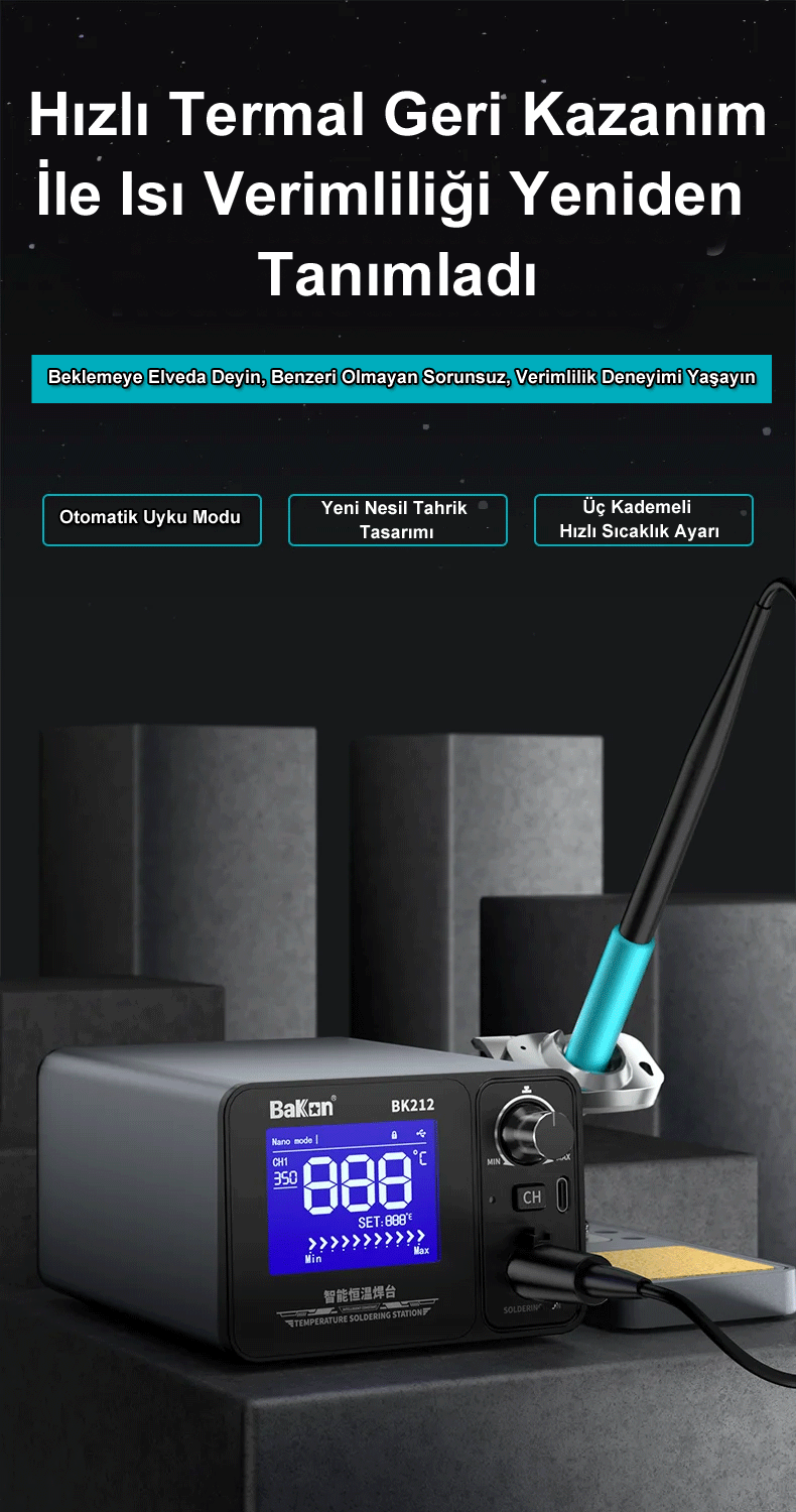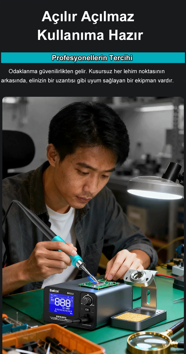 BK212 Lehimleme İstasyonu, amatör kullanıcıdan profesyonel teknik servislere kadar geniş bir kitleye hitap eden, yüksek performanslı ve akıllı bir lehimleme çözümüdür.